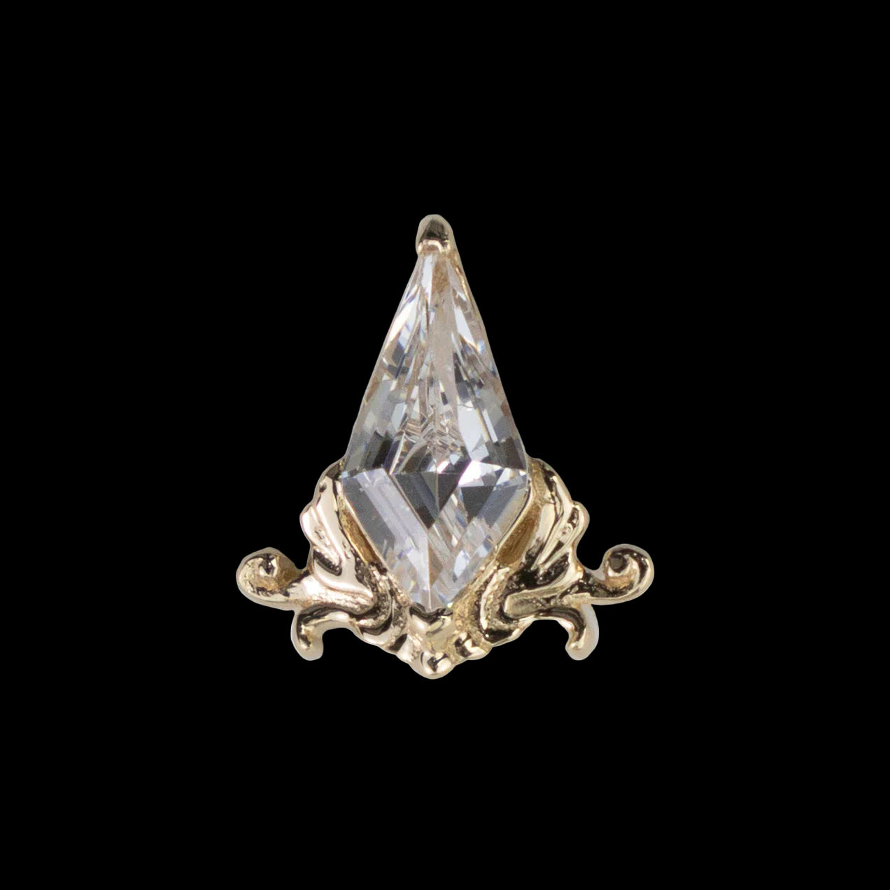"Fool" features a stunning 6mm x 3mm kite cut CZ set in solid 14k yellow gold.