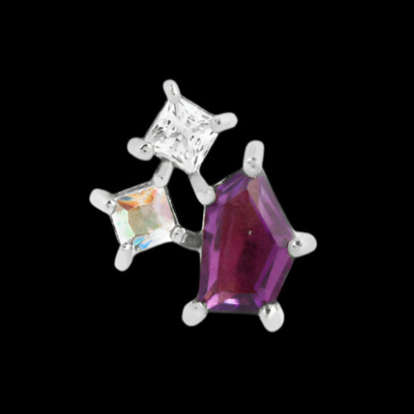 Lyra is such a unique piece, we could not wait to get this for our collection. This piece is perfect for anyone wanting to add some color and fun shapes and textures to their jewelry, and definitely "giving Beetlejuice". This piece is set in solid 14k white gold with genuine amethyst and mercury mist topaz.